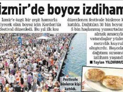 BOYOZ’un İzmir’e dahil olması ve bu kültür ile anılması ise; Dönemin fırın sahibi Yako ustanın yanında çalışmaya başlayan Avram ustanın hem hamur açıp aynı zamanda camekanlı bir tezgahta BOYOZ satmasıyla başlamıştır. Avram ustanın yanına çırak olarak giren Süleyman Usta, Hüseyin Konya, Mehmet Konya’ya bu mesleği öğretmeye başlamasıyla ilk eğitimini de vermiş olur. İççeşmelik yokuşunda Agora’nın arka sokağında Yako ustanın fırınında Avram Usta artık kendi gibi ustalar yetiştirmeye başlamıştır.